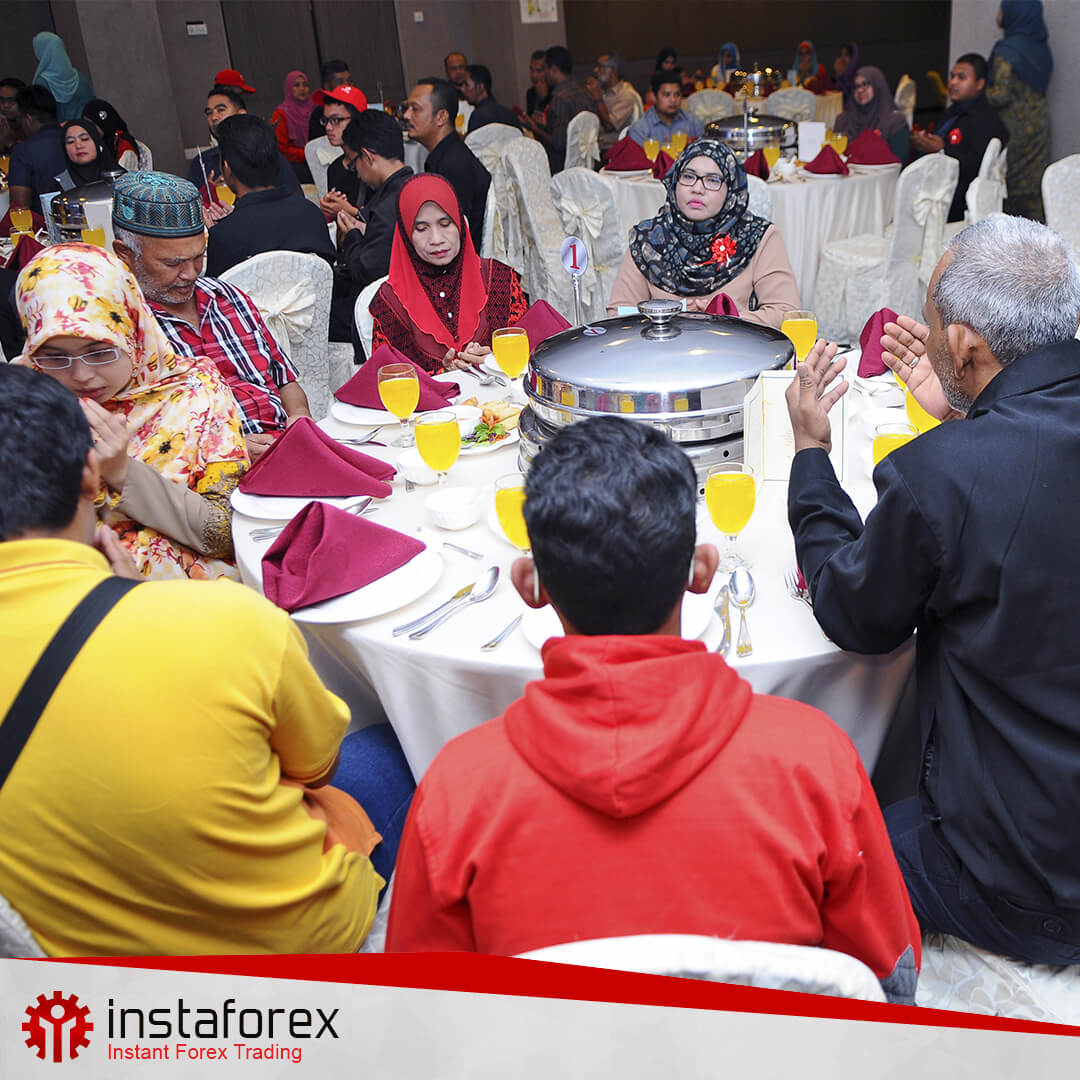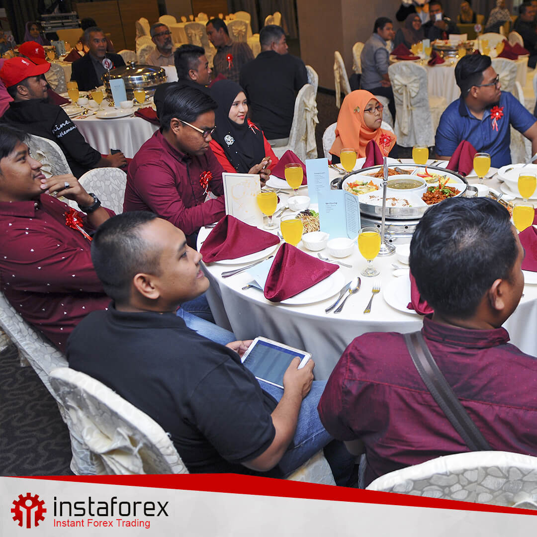 Tetamu untuk Majlis Makan Malam Pedagang Instaforex Kedah menikmati hidangan yang terbaik, dirangkaikan, dan dapat berkongsi idea, berita dan rahsia dalam perdagangan. Semua tetamu dalam acara ini mempunyai minat yang sama — iaitu dalam pasaran pertukaran mata wang asing - supaya mereka mempunyai banyak topik dan cerita untuk dibualkan. Selain itu, para tetamu pada malam itu juga dihargai dengan ucapan Guru forex Muhammad Bin Nordin. Beliau membentangkan kajian menyeluruh tentang analisis teknikal dan berkongsi pengalaman yang terkumpul dan pengetahuannya yang luas, semasa bertahun-tahun kerja dalam bidang kewangan.