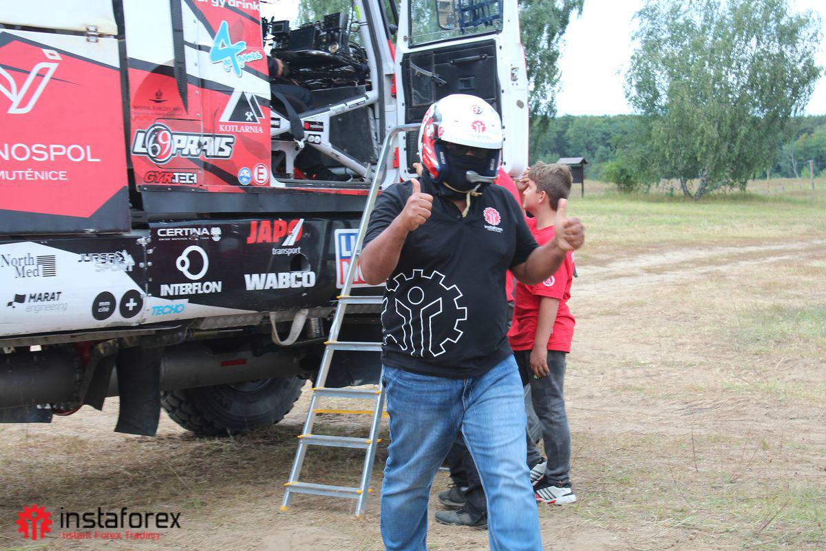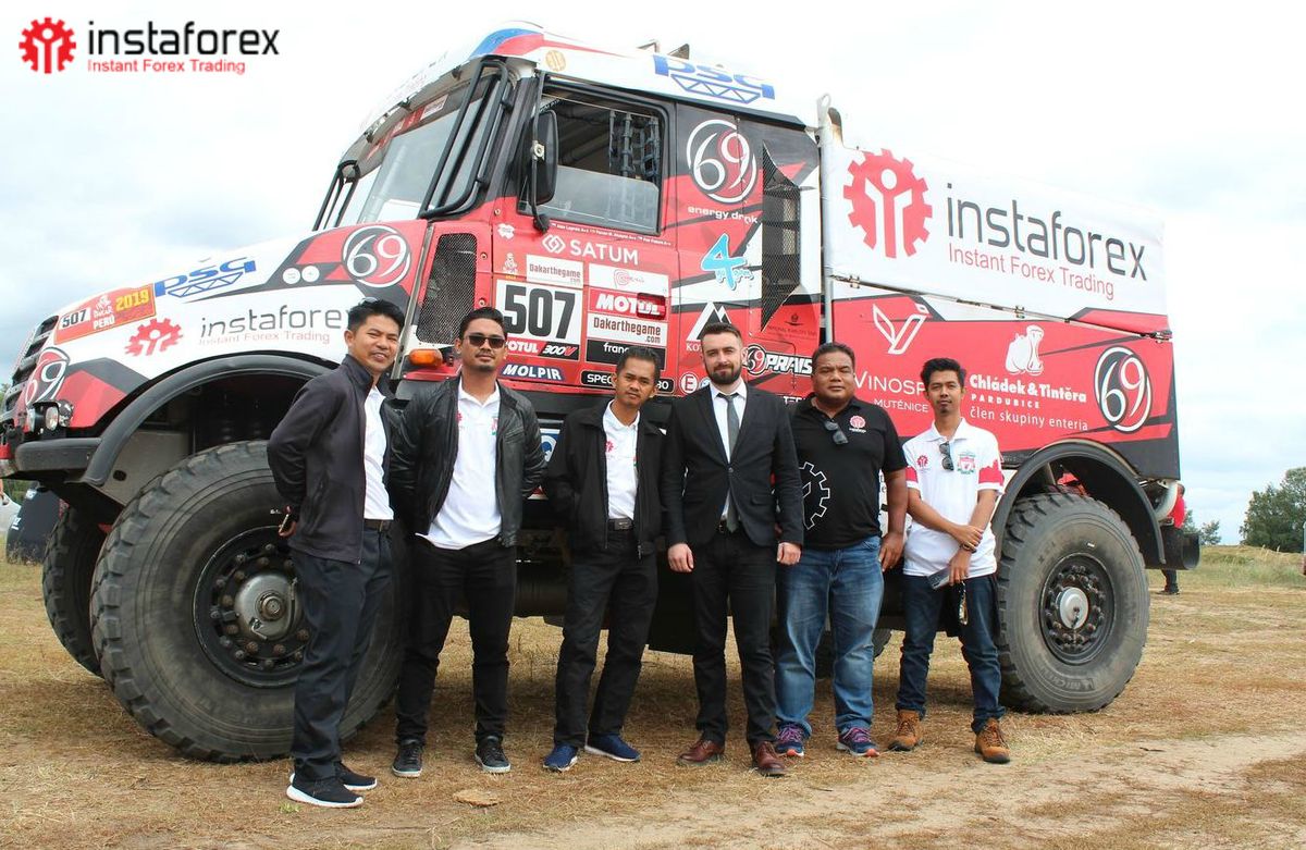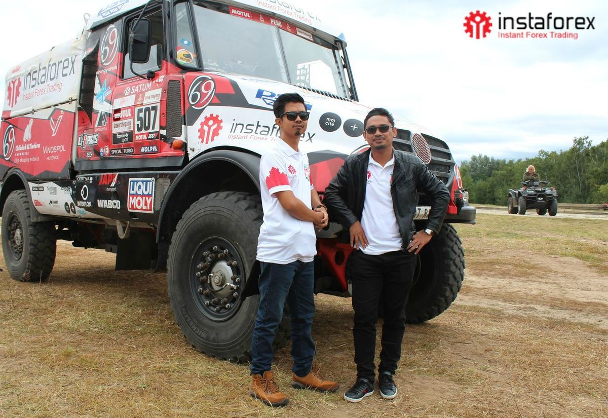 No segundo dia, nossos convidados encontraram os pilotos da InstaForex Loprais Team, a famosa equipe de corrida e um participante regular do Rally Dakar - a maratona transcontinental anual de rali realizada em diferentes partes do mundo. O líder da equipe e o principal piloto, Aleš Loprais, concordaram em mostrar o carro e responder às perguntas de nossos parceiros sobre a corrida. Ele também deu um passeio no caminhão de corrida com todos que queriam dirigir o mais próximo possível da corrida real. Não há palavras para descrever esses sentimentos fantásticos. É uma verdadeira emoção, mesmo que por algumas horas, se tornar um membro da equipe do Rally Dakar, saindo da estrada em velocidade ilimitada.